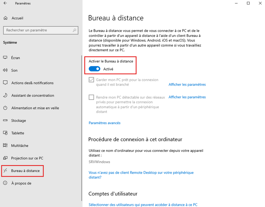 Le service doit être actif (running).