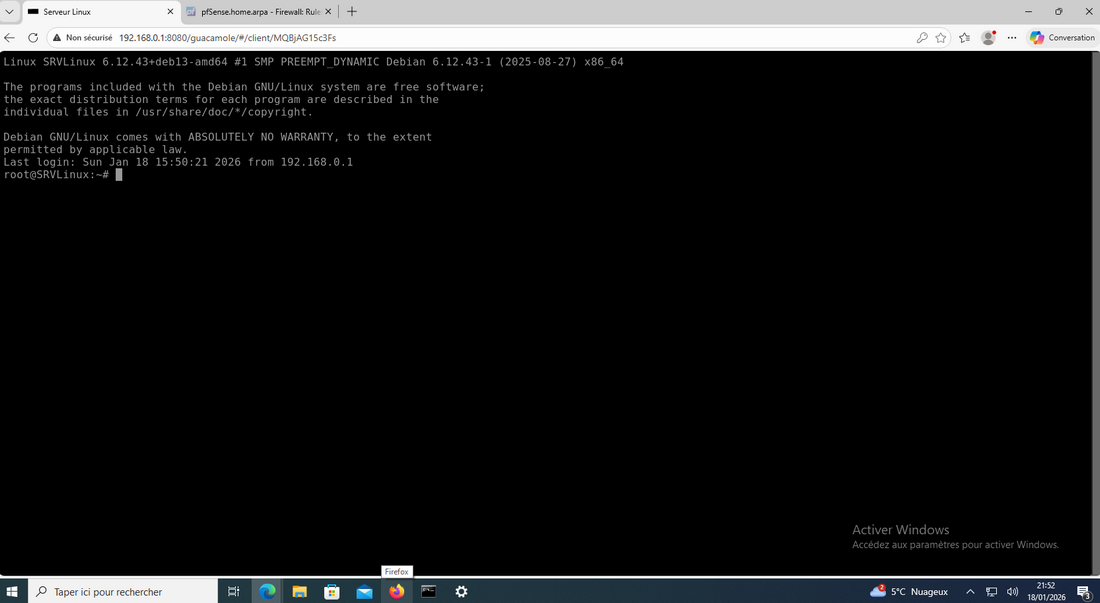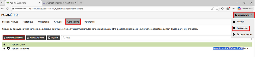 root est désactivée pour des raisons de sécurité. Si vous souhaitez vous connecter en root via Guacamole, modifiez le fichier de configuration SSH :