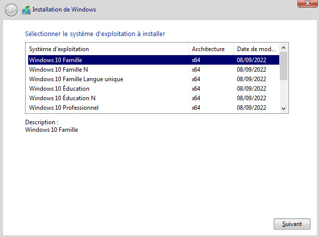 - Choisissez la version de windows souhaitée :