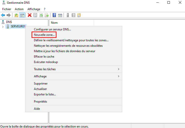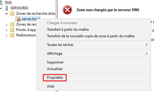 - Sur le serveur maître, faites clic-droit sur le nom de domaine puis propriété