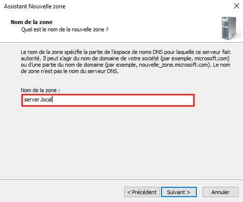 Configuration du serveur DNS :