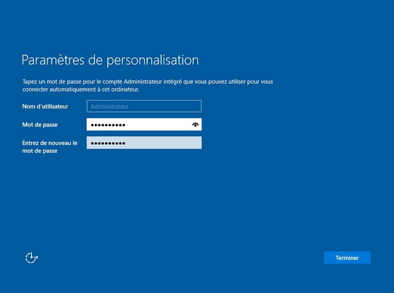 Indiquer un mot de passe pour la session Administrateur :